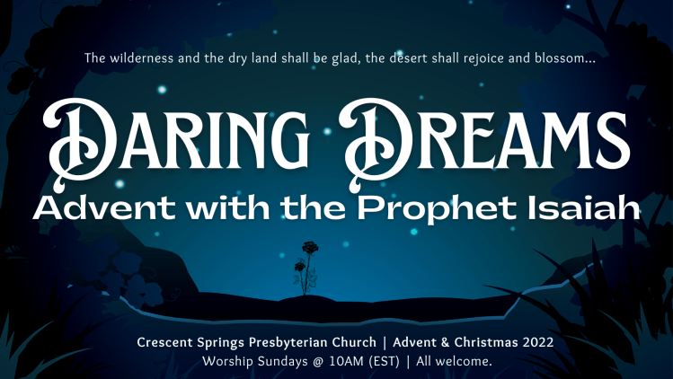 These confessional prayers were created to accompany the Advent sermon series “Daring Dreams.” The bold text is spoken by the whole congregation. You are welcome to use or adapt these liturgies for worship, with credit. When printing these liturgies, please use the following credit line: “Prayer by Rev. Carol Holbrook Prickett.”